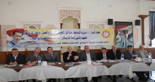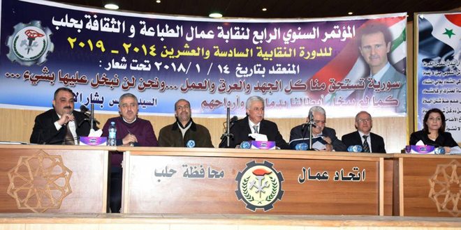 وقال ناصر دلا رئيس نقابة عمال الدولة والبلديات إن “المؤتمر محطة مهمة في مسيرة العمل النقابي وهي منبر حر للنقد والبناء والهدف منها متابعة مطالب العمال وتحسين وضعهم الاجتماعي وايصال مطالبهم” مؤكدا أن العمال سيبنون ما دمره الارهاب وان الطبقة العاملة السورية قدمت وستقدم الشهداء والجرحى في مسيرة التصدي للارهاب.