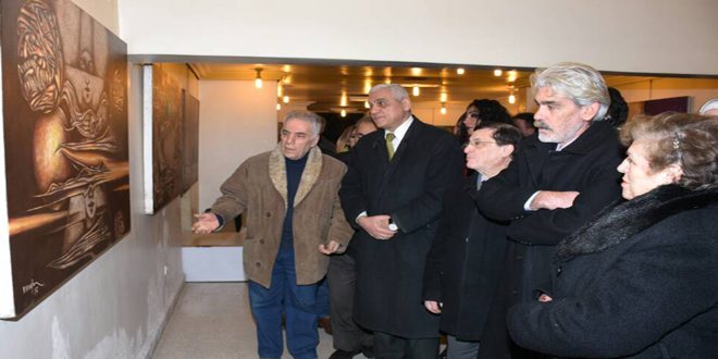 تحت عنوان “تداعيات الإنسان والكون” أقيم مساء اليوم معرض الفن التشكيلي للفنان عبد المحسن الخانجي عرض خلاله 18 لوحة فنية تشكيلية استخدم فيها الألوان الترابية واللون البني بتدرجاته بشكل خاص وذلك في صالة الخانجي بحي السبيل في حلب.