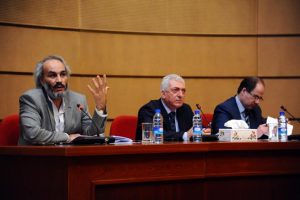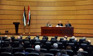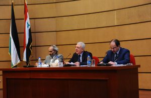 من جانبه تحدث الدكتور عيسى مخول أستاذ القانون الجزائي في كلية الحقوق بجامعة دمشق عن القوانين والقرارات الدولية الصادرة بشأن القدس وأبرز النقاط التي أثارتها مثل شجب الاستيطان الإسرائيلي والقلق حول الاعتداء على المواقع التاريخية والدينية في القدس وضرورة وقف أعمال الحفر تحت المسجد الاقصى .