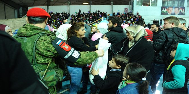 وأعرب عدد من المكرمين عن شكرهم لروسيا ومساندتها سورية جيشاً وشعباً في حربها ضد الإرهاب.