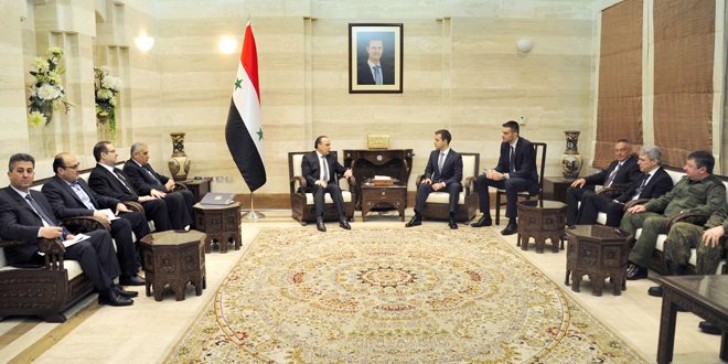 بحث رئيس مجلس الوزراء المهندس عماد خميس اليوم مع وزير الاتصالات والإعلام في روسيا الاتحادية نيكولاي نيكيفوروف والوفد المرافق له تطويرعلاقات التعاون في مجال تقانة المعلومات وتكنولوجيا الاتصالات والاقتصاد الرقمي والاستثمار الأمثل لهذه التقانات في تطوير مختلف مفاصل العمل.