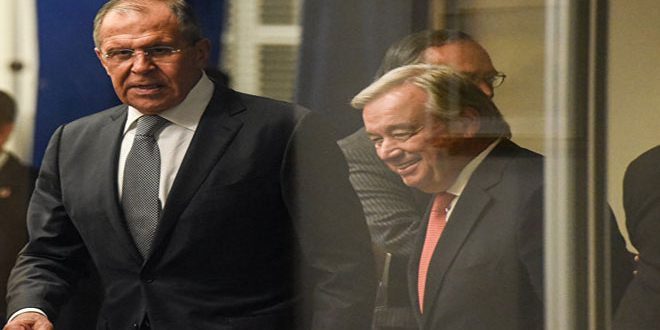 جدد وزير الخارجية الروسي سيرغي لافروف والأمين العام للأمم المتحدة أنطونيو غوتيريس التأكيد على الحل السياسي للأزمة في سورية.
