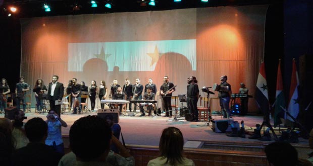 أكثر من 100 شاب وشابة ما بين ممثل وعازف أحيوا مهرجان “الشبيبة نشيد انتصار” على مسرح دار الأسد للثقافة بمناسبة الذكرى السادسة والأربعين لتأسيس منظمة اتحاد شبيبة الثورة.