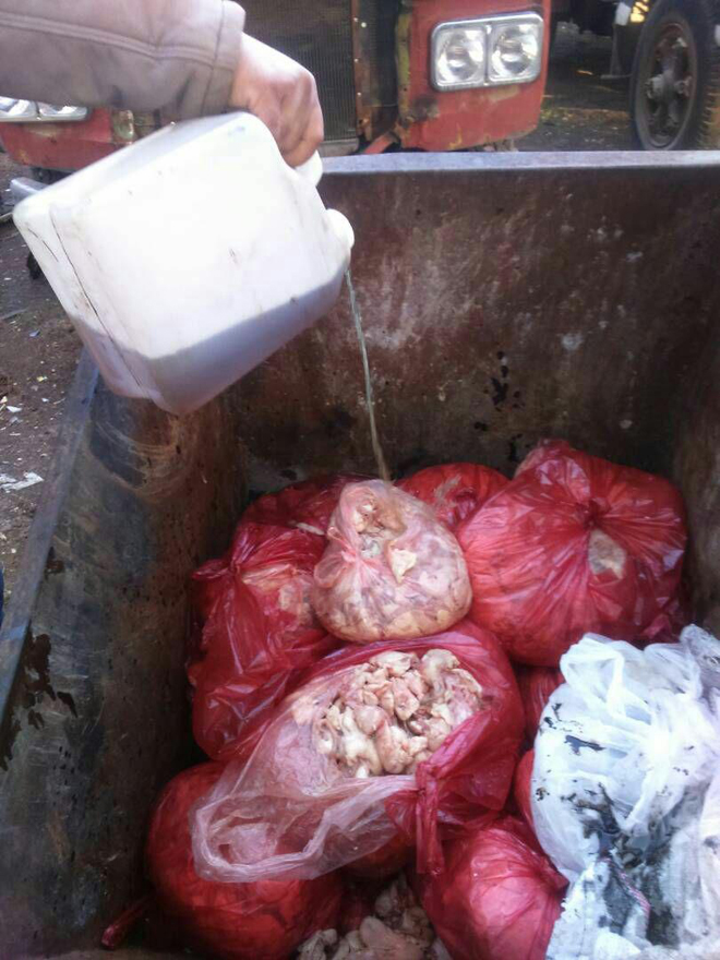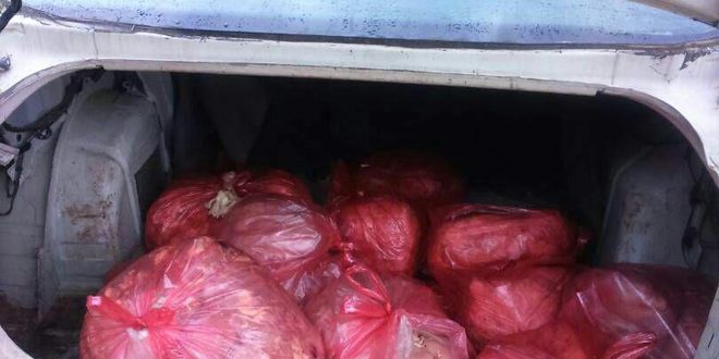 ضبط مجلس مدينة درعا بالتعاون مع قيادة الشرطة اليوم 150كغ من لحم الدجاج الفاسد في محلين بحيي الكاشف وشمال الخط بالمدينة.