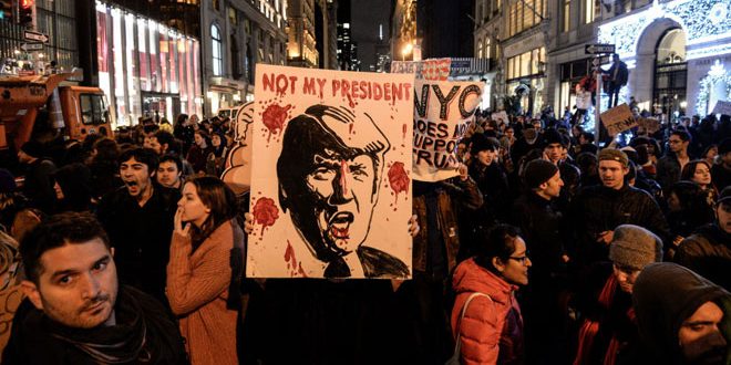 وردد المشاركون في المظاهرة هتافات “القوة لصناديق الاقتراع” ورفعوا لافتات كتب عليها “لا يمكن إصلاح الأغبياء ولكن يجب عدم انتخابهم” و”رئيس الولايات المتحدة عنصري وسننتصر”.