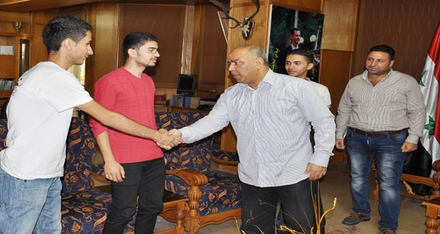 كرمت جامعة البعث في حمص اليوم الطلبة الفائزين بالميدالية النحاسية من فريق فوتون من الجامعة بعد مشاركته بالمسابقة البرمجية للكليات الجامعية التي نظمتها جامعتا تشرين ودمشق والجمعية العلمية السورية للمعلوماتية بالتعاون مع شركة سيرياتيل.