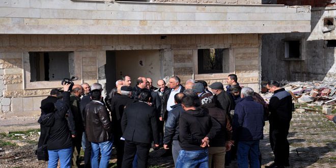 تفقد محافظ حمص طلال البرازي ومديرو المؤسسات الخدمية اليوم الواقع الخدمي في قرية الدوير بريف المحافظة الشمالي وحي القصور في المدينة.