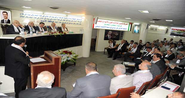 بدوره أكد عضو القيادة القطرية لحزب البعث العربي الاشتراكي عبد المعطي مشلب رئيس مكتب النقابات المهنية أهمية دور الحرفيين ولاسيما بعد تحقيق الانتصار على المؤامرة والبدء بمرحلة إعادة الإعمار حيث سيكون لهم النصيب الأكبر في بناء سورية التاريخ والحضارة والمستقبل.