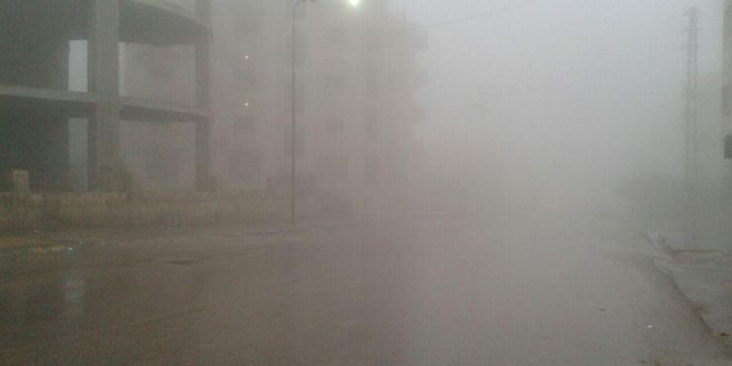 تدني مستوى الرؤية في مدينة السويداء بسبب الضباب الكثيف