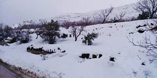 2018-01-28ريف دمشق-ساناغطت الثلوج قرية بقعسم في جبل الشيخ فأكسبتها منظراً في غاية الجمال ومنحتها بشائر خير وعطاء بموسم وفير.. كاميرا سانا جالت في القرية والتقطت الصور التالية.. 2018-01-28sana