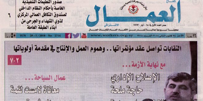 تناولت المقالات والدراسات في العدد الجديد من جريدة كفاح العمال الاشتراكي قضايا تخص نقابات العمال فضلا عن أبعاد الحرب على سورية سياسيا وثقافيا.