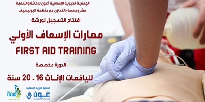 ست عشرة يافعة انضممن إلى أولى ورشات مهارات الاسعاف الأولي التي أطلقها مؤخرا مشروع “همة” لنماء ومشاركة اليافعين التابع للجمعية الخيرية الإسلامية “عون” للإغاثة والتنمية وذلك ضمن أحد مراكزه بحمص.