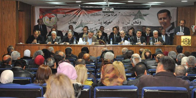 وأكد رئيس النقابة علي مرعي خلال كلمة له في المؤتمر أن الطبقة العاملة استطاعت رغم الاستهداف الكبير لمقومات الاقتصاد الاستمرار في العمل وإدارة عجلة الإنتاج وتأمين الجزء الأكبر من احتياجات الشعب فكانت هذه الطبقة رديفا حقيقيا للجيش العربي السوري تنتج بيد وتدافع عن معاملها بيد أخرى.