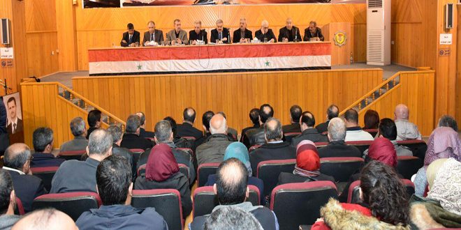 وأكد أمين فرع حماة لحزب البعث أشرف باشوري ضرورة الحفاظ على مكاسب العمال من طبابة ولباس وخاصة في مؤسسات القطاع العام.
