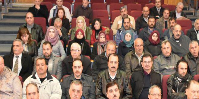 وقال معن رزق عضو قيادة فرع حماة لحزب البعث العربي الاشتراكي رئيس مكتب التنظيم إن “الازمات والظروف القاسية تخلق كوادر وطنية قادرة على إدارة شؤون المرحلة وهو ما حصل في مؤءسساتنا خلال الازمة في سورية”.
