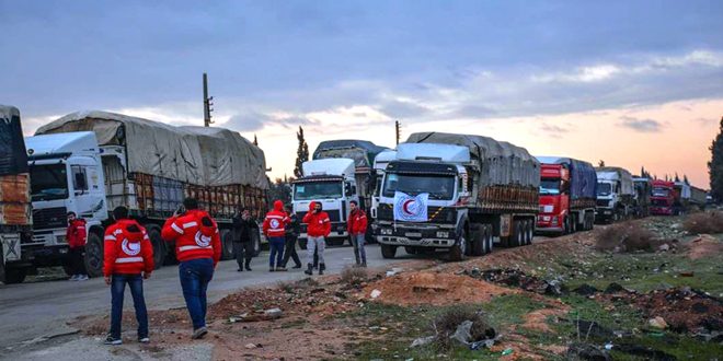 أوصلت منظمة الهلال الأحمر العربي السوري قافلة مساعدات إنسانية جديدة إلى الأهالي العائدين الى منازلهم في ريف الرقة الجنوبي.