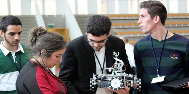 أحرز فريق نادي الروبوتيك في كلية الهندسة الكهربائية والميكانيكية بجامعة دمشق المركز الأول في مسابقة تحدي التصميم الهندسي التي أقيمت بداية الأسبوع الجاري في الجامعة الأمريكية بلبنان بمجموع نقاط قدره 7ر92 بالمئة إضافة إلى حصوله على جائزة أفضل تصميم في المسابقة فيما أحرز فريق كلية الهندسة المعلوماتية المركز الثاني بمجموع نقاط بلغ 78 بالمئة على مستوى الفرق المشاركة البالغة 15 فريقا من لبنان وسورية.