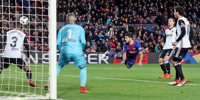 وأنهى الأوروغوياني لويس سواريز صمود بلنسية بعدما انقض برأسه على تمريرة ليونيل ميسي العرضية ليهز الشباك في الدقيقة 67 ما يجبر بلنسية على الفوز بفارق هدفين في استاد ميستايا في الإياب الخميس المقبل.