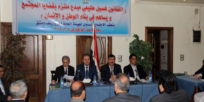 ناقش أعضاء المؤتمر السنوي لفرع ريف دمشق لنقابة الفنانين سبل زيادة فرص العمل لتشمل كل المنتسبين للفرع والمشاركة في جميع المهرجانات والفعاليات الفنية على مستوى المحافظة.