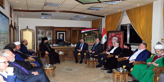 وأشار السيد خلال لقائه اليوم وفد الجمعية الروسية متعددة الانتماءات الدينية لمساعدة الشعب السوري برئاسة الأب الارشمندريت سيفان ايفونوموف أنه تم بحث “مسألة تبادل الخبرات بين المؤسسات الدينية في البلدين في مواجهة الفكر الإرهابي التكفيري الوهابي وتبادل المدرسين الدينيين بينهما” مثمنا موقف روسيا الاتحادية شعبا وحكومة وقيادة في دعم الشعب السوري في حربه ضد الإرهاب.