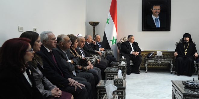 أكد رئيس مجلس الشعب حموده صباغ خلال لقائه وفدا من اعضاء فريق العمل المشترك بين الديانات لدى مجلس التعاون مع المنظمات الدينية التابع للرئاسة الروسية وعلى رأسه أمين العلاقات بين المسيحيين فى قسم العلاقات الكنسية الخارجية فى بطريركية موسكو وسائر روسيا ستيفان ايغومنوف ومفتى موسكو البير كرغانوف أهمية تبادل الزيارات بين أبناء الشعبين الصديقين اللذين يخوضان معركة مشتركة ضد الارهاب.