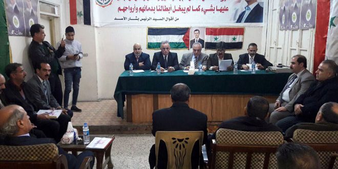 وأكد همام دبيات عضو قيادة فرع حماة لحزب البعث دور المعلم في مواجهة الفكر الإرهابي الظلامي وبناء الجيل المتسلح بقيم العلم وحب الوطن والدفاع عنه بينما لفت رئيس المكتب الفرعي لنقابة المعلمين بحماة عبد العزيز الأخرس إلى اهتمام مكتب النقابة بتلبية مطالب المعلمين ومناقشة همومهم ومشكلاتهم والعمل على إيجاد الحلول المناسبة لها.