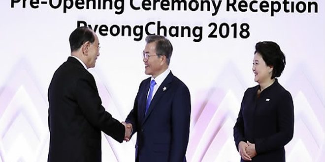 التقى رئيس كوريا الجنوبية مون جاي ان مع رئيس البرلمان في كوريا الديمقراطية الشعبية كيم يونغ نام وتصافحا قبيل حفل افتتاح الألعاب الألمبية في سيئول اليوم.