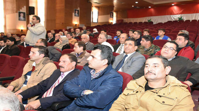 حضر الاجتماع زياد صباغ عضو لجنة الرقابة والتفتيش الحزبية والدكتور محمد زياد سلطان رئيس جامعة حماة وأعضاء قيادة فرع حماة لحزب البعث وعدد من أعضاء مجلس الشعب.