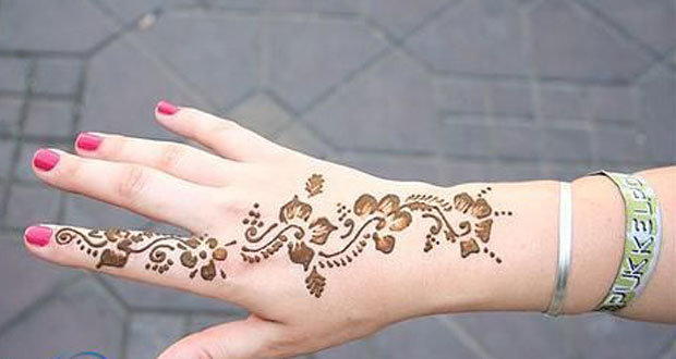 وأردف بركات اننا نرسم الحنة على الأكتاف والأيدي والقدمين وبالنسبة للرسومات فهي متنوعة فمنها أشكال هندسية ومنها الزهور وبعض أشكال الطيور وأكثر السيدات يرغبن بنقش الحنة على أصابع اليد وباطن الكفين وأن اللون البني المائل إلى البنفسجي هو اللون المرغوب به بالنسبة للسيدات السوريات عكس بقية سيدات دول الجوار اللواتي يرغبن بلون الحنة السوداء أي الغامقة.