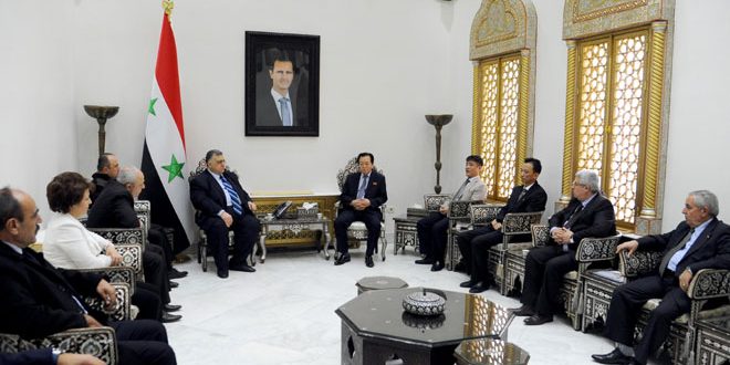 أكد رئيس مجلس الشعب حموده صباغ خلال لقائه اليوم سفير جمهورية كوريا الديمقراطية الشعبية بدمشق “زانغ ميونغ هو” أهمية تطوير العلاقات الثنائية بين البلدين الصديقين في كل المجالات ولا سيما البرلمانية منها.
