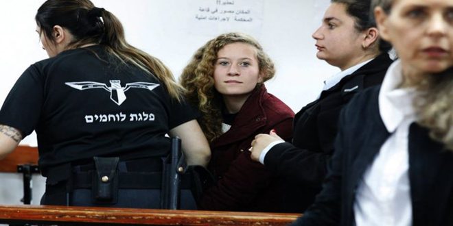 وأوقفت عهد في كانون الأول الماضي إثر انتشار شريط فيديو تظهر فيه وهي تطرد جنديين إسرائيليين من محيط منزلها في قريتها النبي صالح في الضفة الغربية.