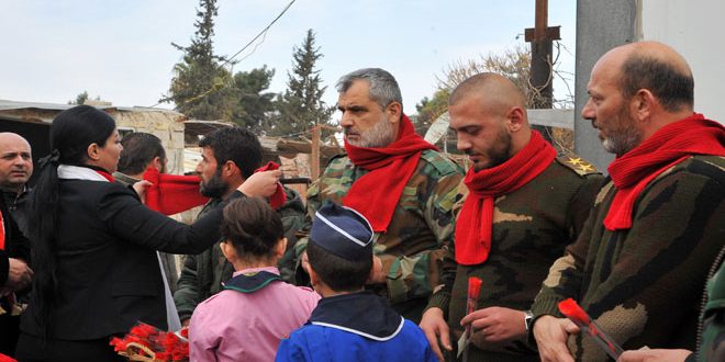 وأعرب عدد من الجنود عن شكرهم الكبير للمبادرة التي تمثل كل أمهات شهداء الوطن مؤكدين استمرارهم بأداء واجبهم الوطني في الدفاع عن كل ذرة تراب من الوطن والحفاظ على سيادة سورية وسلامة أراضيها حيث أن “مناسبة عيد الحب بالنسبة لهم تتمثل بالوفاء لدماء الشهداء”.