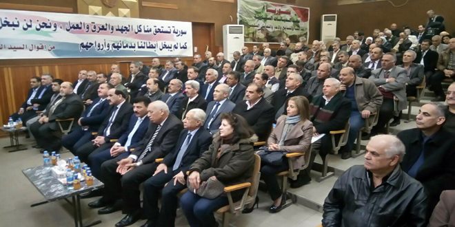 وقدم أمين فرع طرطوس لحزب البعث العربي الاشتراكي مهنا مهنا عرضا للواقع السياسي مشيدا بالبطولات والتضحيات التي يقدمها أبطال الجيش العربي السوري في الحرب على الإرهاب.