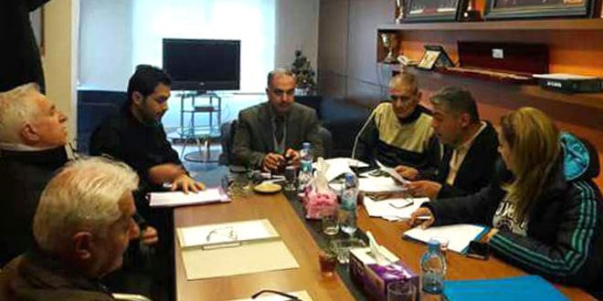 بحث رئيس مكتب الشباب والرياضة في فرع حمص لحزب البعث العربي الاشتراكي شحادة مطر الواقع الرياضي في المحافظة وسبل الارتقاء فيها إلى جانب الاشكاليات المتعلقة باستثمار المرافق التابعة لناديي الكرام والوثبة.