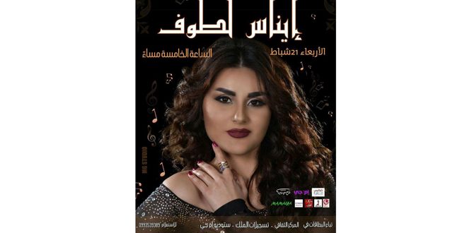 تحيي المغنية إيناس لطوف حفل غناء عند الخامسة من مساء اليوم على خشبة مسرح المركز الثقافي بطرطوس.