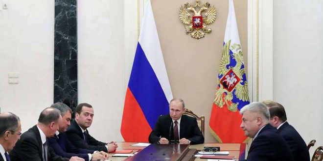 بحث الرئيس الروسي فلاديمير بوتين اليوم مع أعضاء مجلس الأمن الروسي تطورات الوضع في سورية.