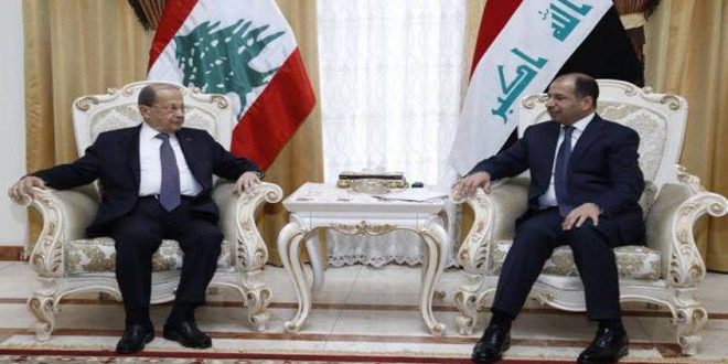بحث الرئيس اللبناني ميشال عون مع رئيس مجلس النواب العراقي سليم الجبوري في بغداد اليوم العلاقات الثنائية بين البلدين في مختلف المجالات بما فيها مكافحة الإرهاب والاستثمار.
