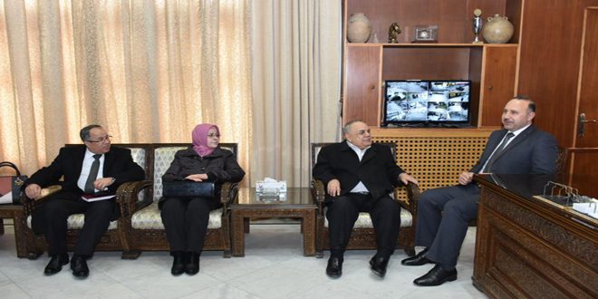 بحث محافظ حماة الدكتور محمد الحزوري مع محمد عبدي ادار مدير مكتب وكالة الأمم المتحدة لإغاثة وتشغيل اللاجئين الفلسطينيين الأونروا واقع الخدمات والنشاطات التي تقدمها المنظمة للاجئين الفلسطينيين في المحافظة وسبل دعمهم لما فيه تحسين أوضاعهم في النواحي كافة.