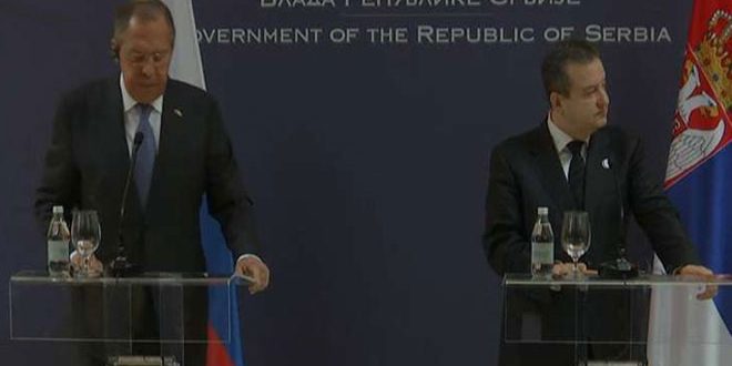 وقال لافروف خلال مؤتمر صحفي مع نظيره الصربي ايفيكا داسيتش في بلغراد اليوم “يثير قلقنا العميق صيغة مناقشة المواضيع الانسانية في سورية التي تهدف إلى توجيه الاتهامات للحكومة السورية وحماية التنظيمات الإرهابية.. نحن دائما كنا نتوجه إلى مجلس الامن مع دعوة إلى تقييم هذه الاعتداءات الإرهابية غير المقبولة وكل مرة كانت الدول الغربية تتخلى عن أي رد وهذا يولد انطباعا معينا”.
