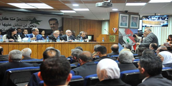 بدوره أشار عضو القيادة القطرية لحزب البعث العربي الاشتراكي رئيس مكتب العمال والفلاحين شعبان عزوز إلى أن المؤتمرات تجسد بشكل حقيقي متطلبات العمال وهمومهم لافتا إلى أن عمال سورية قدم الآلاف منهم دماءهم بسخاء إكراما وفداء للوطن وداعيا إلى الاستعداد لمرحلة البناء.