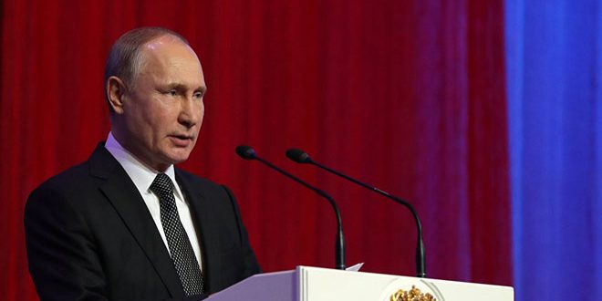 أكد الرئيس الروسي فلاديمير بوتين أن القوات الروسية المشاركة في مهمة محاربة التنظيمات الإرهابية في سورية تمكنت بالتعاون مع الجيش العربي السوري من تحقيق النصر على تنظيمات إرهابية خطرة وضخمة والقضاء عليها.
