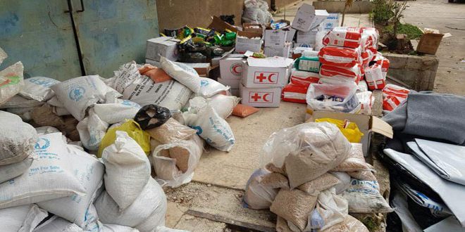 ضبطت عناصر دوريات حماية المستهلك في مديرية التجارة الداخلية بحمص اليوم مستودعاً خاصا في حي الغوطة يحوي كميات كبيرة من المواد الإغاثية بغرض الإتجار غير الشرعي بها رغم أنها توزع مجاناً من قبل الدولة أو المنظمات الدولية لغايات إنسانية.