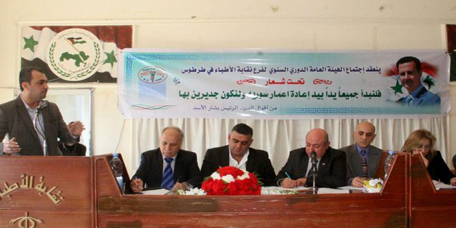 دعا أعضاء المؤتمر السنوي لفرع نقابة الأطباء بطرطوس إلى تحسين واقع عمل الطبيب وتعديل التعرفة الطبية وأجور الأطباء المعتمدين في مؤسسات القطاع العام وفق نظام الصندوق المشترك.