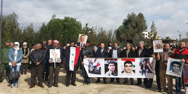 نظمت محافظة القنيطرة بالتعاون مع لجنة دعم الأسرى المحررين والمعتقلين في سجون الاحتلال الإسرائيلي اليوم وقفة تضامنية مع عميد الأسرى السوريين المناضل صدقي سليمان المقت الذي دخل عامه الرابع في سجون الاحتلال بعد القرار الجائر للاحتلال بالحكم عليه بالسجن 14 عاما.