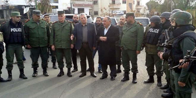 تفقد محافظ السويداء عامر العشي وأمين فرع حزب البعث العربي الاشتراكي فوزات شقير وقائد شرطة المحافظة اللواء فاروق عمران بعد ظهر اليوم عددا من دوريات قوى الأمن الداخلي المنتشرة على الطرقات وفي الساحات العامة والساهرة على امن وراحة وسلامة المواطنين وممتلكاتهم.