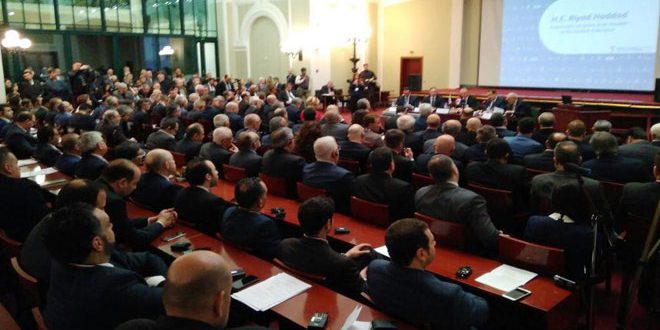 وقال حداد في كلمة له خلال افتتاح الملتقى إن “أهم ما يميز هذا اللقاء هو الاندفاع المتبادل وحرص رجال الأعمال الروس على المتابعة والتواصل وطرح التساؤلات عن الواقع القائم وعن أكثر المجالات التي يمكن المساهمة فيها بإعادة الإعمار” مضيفا “إن علاقاتنا التاريخية العريقة تعمدت بالدم الذي امتزج فأثمر انتصارا على هذا الإرهاب التكفيري الظلامي الذي دمر البنية التحتية وعاث فسادا وخرابا مدعوما من قوى إقليمية ودولية”.