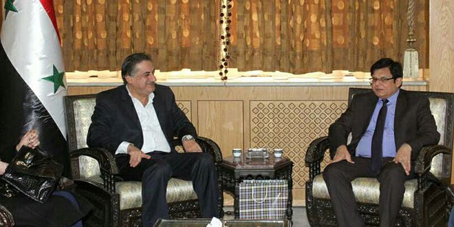 بحث محافظ حلب حسين دياب مع السفير الهندي بدمشق مان موهان بانوت والوفد المرافق له اليوم سبل زيادة التعاون المشترك لإعادة بناء ما دمرته يد الإرهاب.
