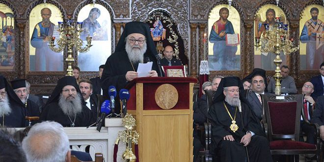وقال البطريرك يازجي خلال مشاركته في احتفالية في كنيسة الاجيا صوفيا بالعاصمة القبرصية نيقوسيا بحضور الرئيس القبرصي نيكوس أناستاسياديس: “إن ما يحدث في بلادنا وخصوصا في سورية من إرهاب وقتل وخطف وتدمير غريب عن ثقافتنا.. فنحن شعب يحب السلام ويستحق أن يعيش بسلام.. ومن هذا المنبر نغتنم الفرصة لنخاطب المجتمع الدولي ونقول.. أعطونا السلام”.