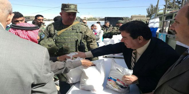 وزعت محافظة درعا اليوم 350 حصة غذائية فردية على الأهالي والمهجرين في بلدتي المسمية وأم القصور بالريف الشمالي مقدمة من الحكومة الروسية.