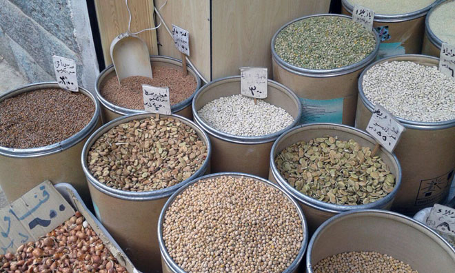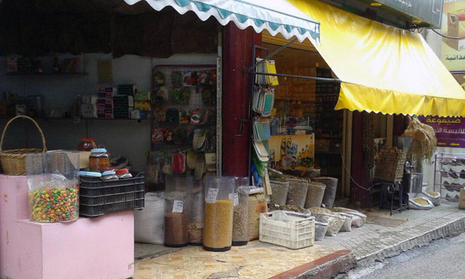 ومن بين محاله المتنوعة يشكل محل متخصص ببيع مختلف أنواع الحبوب علامة بارزة فيه إلى يومنا هذا محافظا على جماليته المستمدة من رائحة الأرض وغلالها الوفيرة الموزعة ضمن أرجائه كما يروي صاحبه عدنان محاسن الذي ورث المحل عن جده وأبيه وعمل فيه منذ نعومة أظفاره لبيع القمح والشعير والعدس والأعلاف قبل أن تضاف إليه لاحقا حبوب أخرى كالفاصولياء والفول والحمص و كذلك الكشك وبعض أطعمة الطيور.